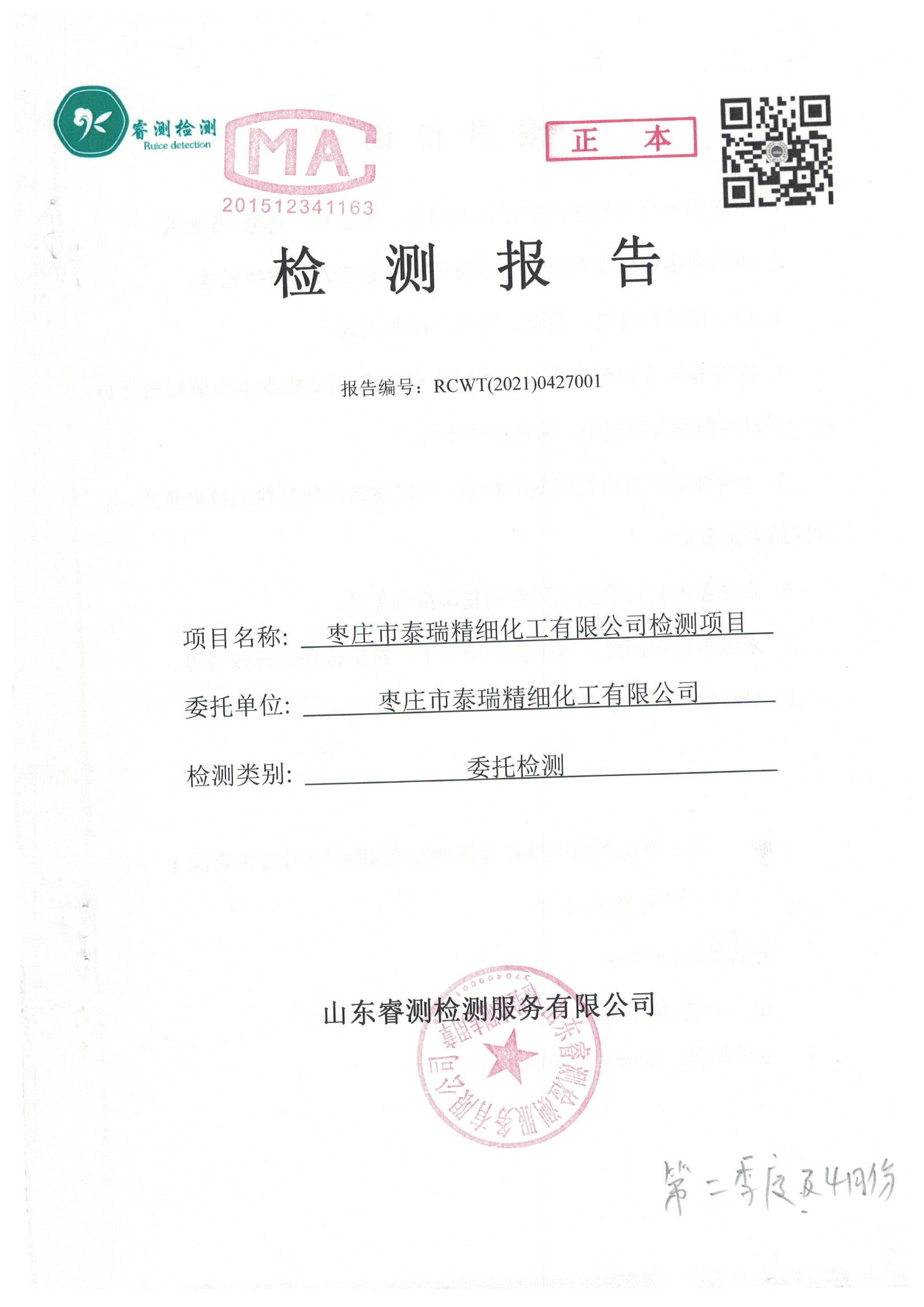 2021年4月份及季度自行檢測報告