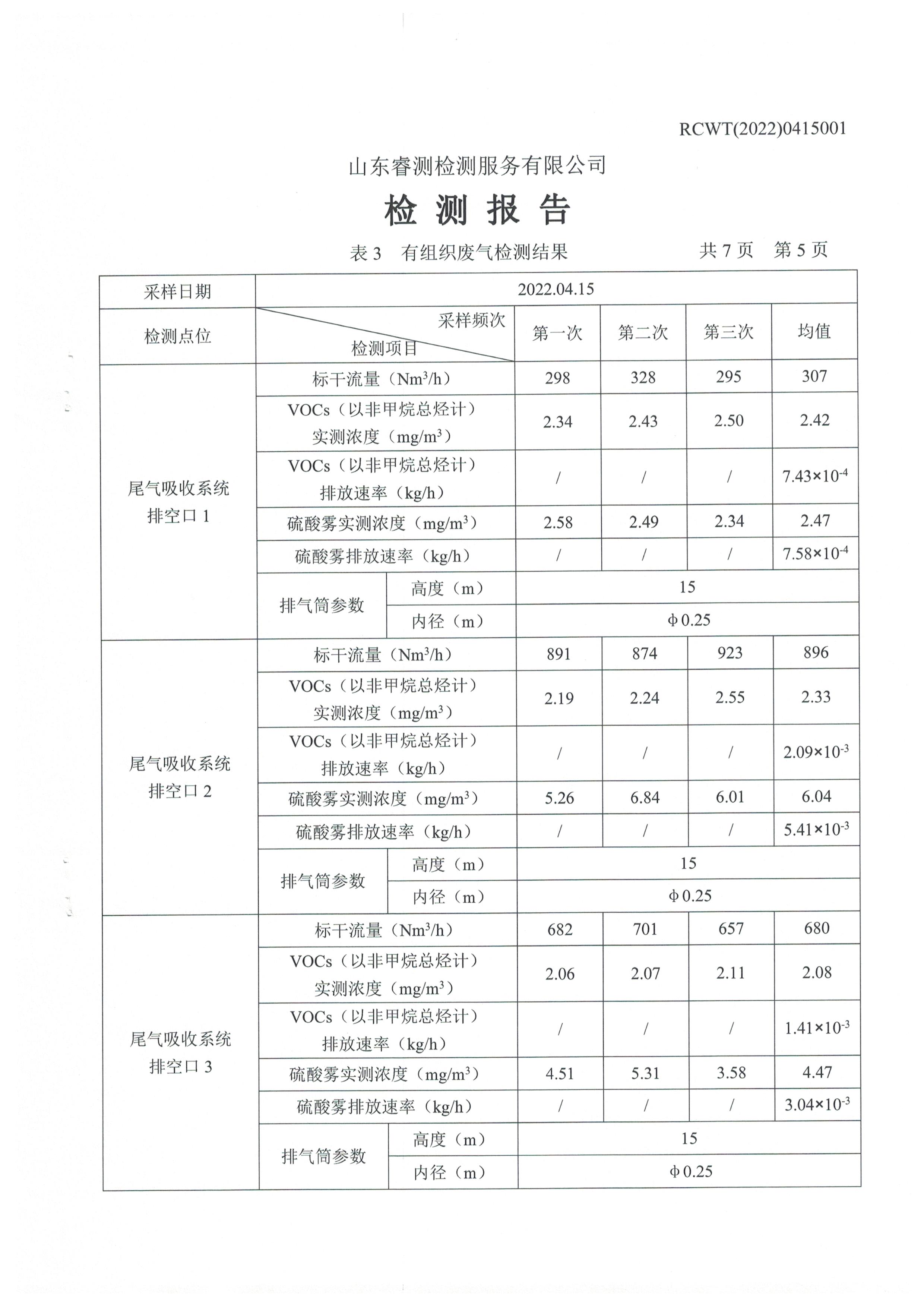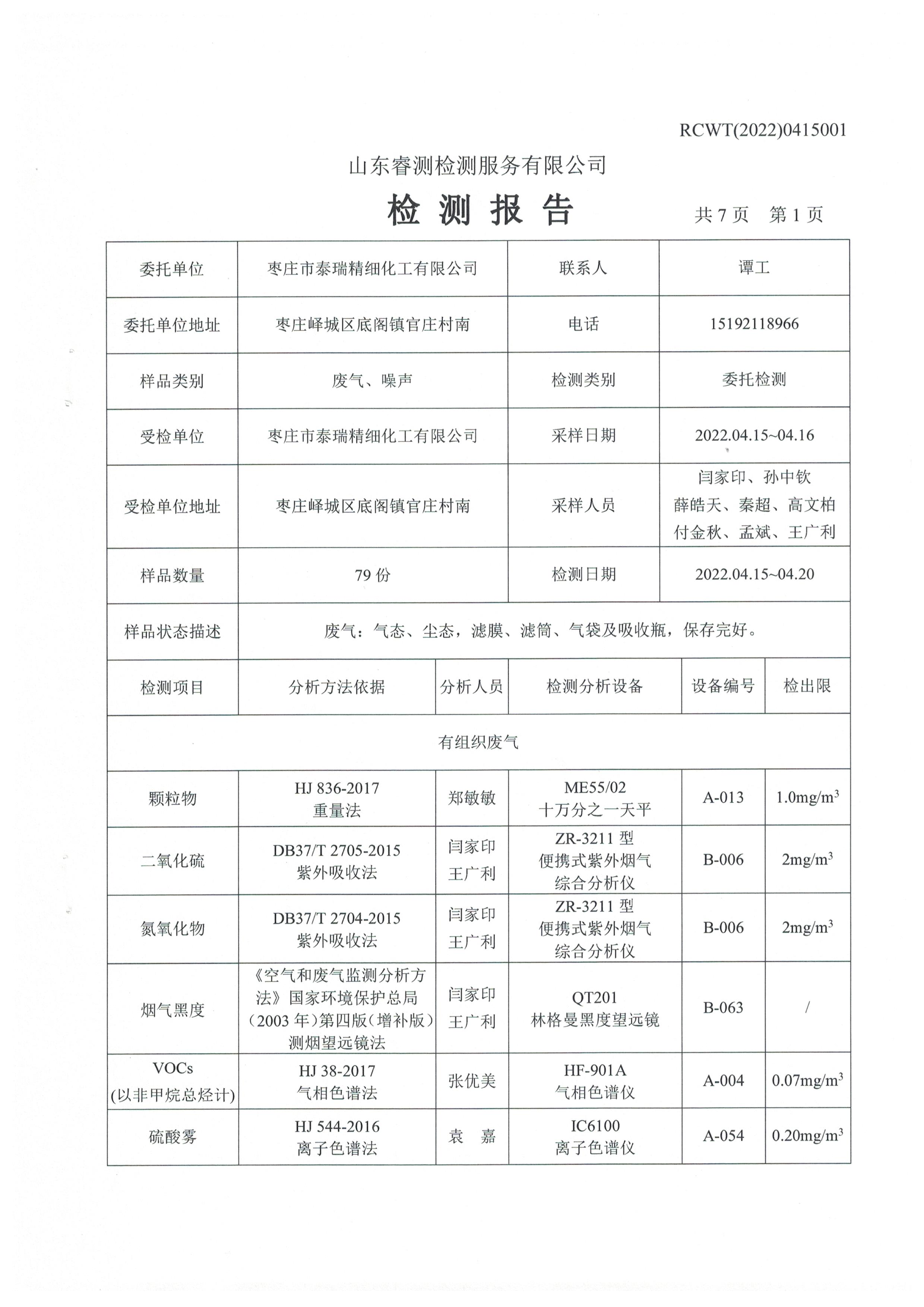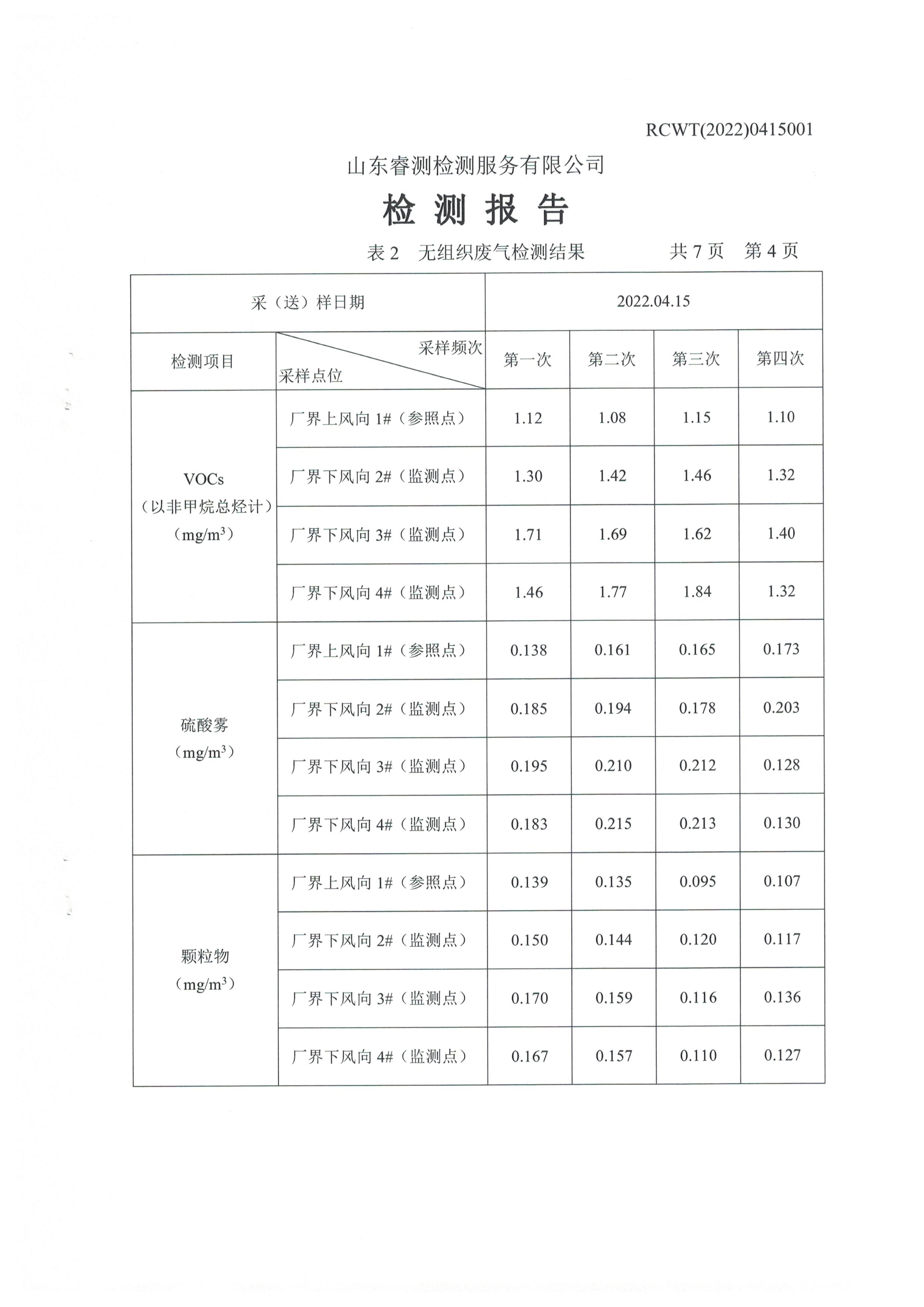2022年第二季度(4月份)自行檢測報告