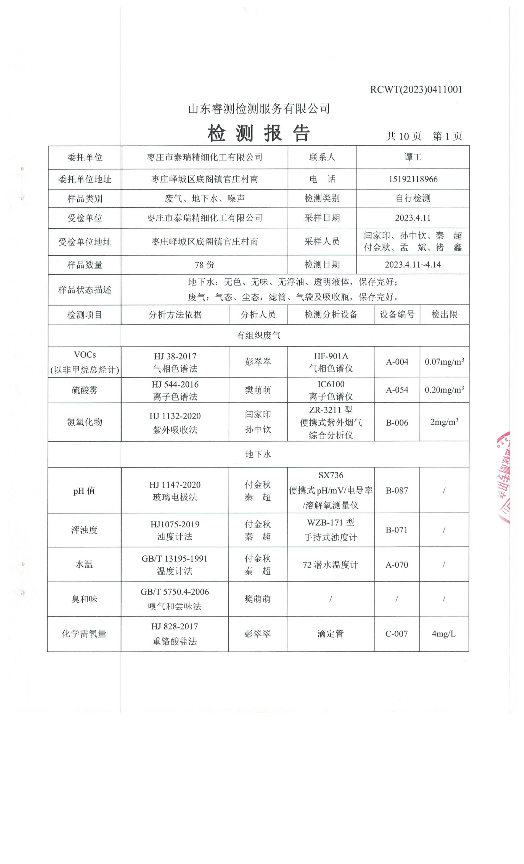 2023年第2季度(4月份)檢測(cè)報(bào)告