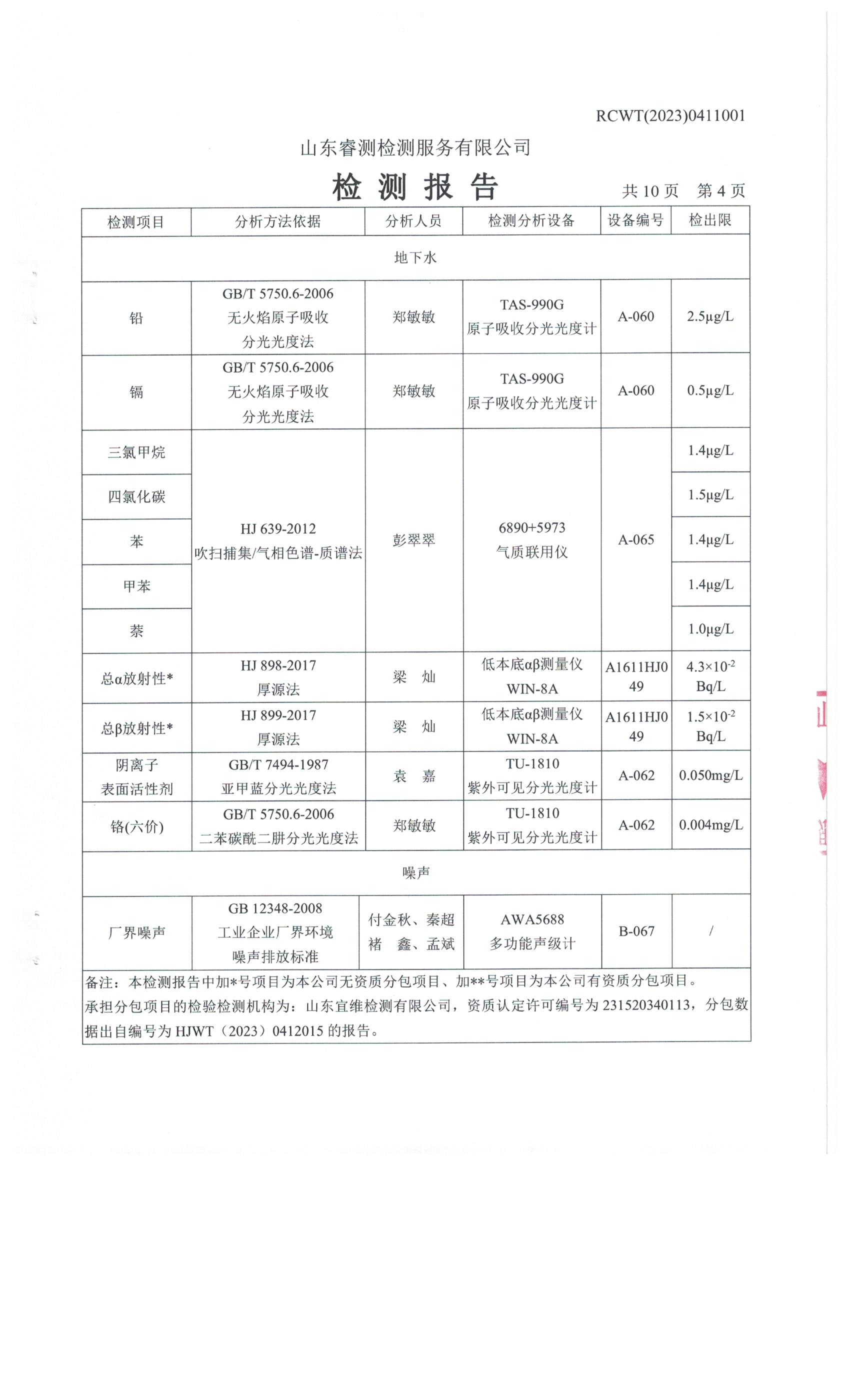 當(dāng)前位置:首頁>新聞中心>公司動(dòng)態(tài)>2023年第2季度(4月份)檢測(cè)報(bào)告
