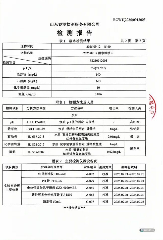 2025年9月廢水檢測報告